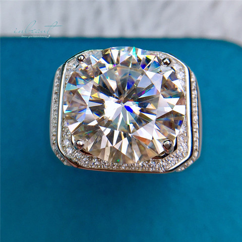 فضي أصلي 5 قيراط قطع رائعة اختبار تمرير الماس الأصلي أخضر غامق خاتم مويسانيتي للرجال هدية الزفاف مجوهرات راقية